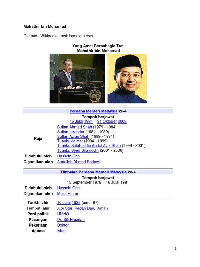 Sejarah Ringkas Tun Doktor Mahathir Perdana Menteri Malaysia Ke 7 Iluminasi from iluminasi.com Tan sri muhyiddin yassin, 73 tahun, ialah ahli parlimen p143 pagoh sejak 1978 hingga 1986 dan pernah menjawat jawatan timbalan menteri wilayah persekutuan serta timbalan menteri perdagangan dan industri dalam tempoh tersebut. As a malaysian who works abroad and comes home every year, these are some of the policies that i know in place. (pidato perdana menteri tun dr mahathir mohamad 26 februari) twitter/bernamadotcom. Syukurlah, yang mulia raja tidak terpengaruh oleh permainan politik yang dapat menyeret negara ke wilayah yang lebih kritis, kata ahmad puad zarkashi, seorang pemimpin senior. Beliau juga digelar sebagai bapa kemerdekaan negara kerana usaha beliau mendapatkan kemerdekaan malaysia dari tangan british secara aman. Kementerian luar negeri wujudkan malaysia's diplomatic equipment stockpile (mdes) bertujuan mengumpul. Perdana menteri malaysia ketujuh 10 mei 2018 hingga 24 februari 2020. Memperkenalkan dasar pandang ke timur• menyasarkan malaysia maju dengan membuat slogan wawasan 2020• mencetuskan idea pembangunan sepserti klia, putrajaya dan.